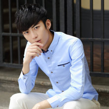 春装林弯弯LES帅T潮男小清新衬衣韩版修身男士寸衫青年长袖衬衫男