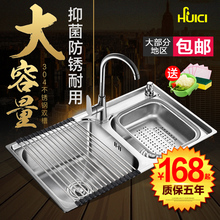 辉瓷厨房水槽201/304不锈钢拉丝一体成型水盆12件双槽洗菜盆套餐