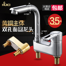 辉瓷卫浴龙头 百变旋转 冷热水龙头冷热双孔/三孔面盆 双孔