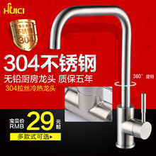 辉瓷厨房水龙头冷热洗菜盆单把旋转龙头304不锈钢水槽菜盆水龙头