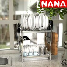 NANA 304不锈钢双层厨房置物架收纳架 碗架沥水架碗碟架盘架