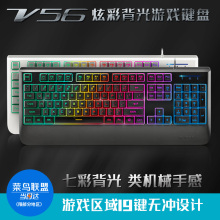 雷柏V56炫彩背光游戏键盘 键盘 有线 游戏键盘 背光键盘 发光键盘