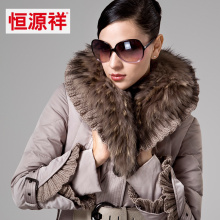恒源祥2016冬装新款羽绒服女中长款大毛领加厚修身保暖显瘦外套女