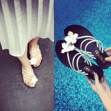 2017夏季新品甜美平底女拖鞋夹脚沙滩鞋花朵学生两穿人字拖凉鞋女