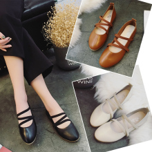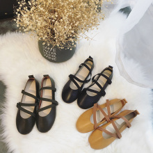 豆豆鞋松紧带女鞋圆头平底浅口奶奶鞋交叉绑带单鞋牛筋底芭蕾舞鞋