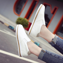 春季黑白色套脚乐福鞋韩版潮皮面一脚蹬懒人鞋女平底休闲板鞋