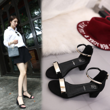 凉鞋女夏中跟高跟鞋2016新款夏天百搭一字扣粗跟女士罗马凉鞋女鞋