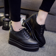 单鞋低帮鞋女鞋侧拉链松糕跟内增高皮鞋2016春秋新款厚底女式潮鞋
