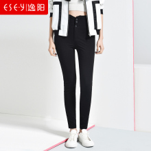 逸阳女裤2017春季新款休闲裤女显瘦黑色高腰裤打底裤外穿长裤1890