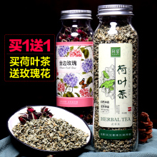 促【买1送1送玫瑰花】 荷叶茶 手工炒制干荷叶 颗粒罐装花茶包邮