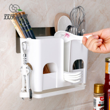 双庆挂式厨房筷笼 吸盘筷子筒 三格沥水筷子架筷笼子餐具架筷子