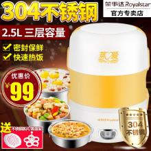 荣事达电热饭盒热饭器三层蒸煮饭盒可插电加热保温304不锈钢便携