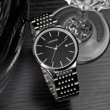 手表男精钢日历超薄时尚潮流男士手表男表石英表简约非机械表