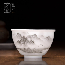 景君 景德镇陶瓷器 手绘 墨彩山水 功夫 茶杯 品茗杯茶具主人杯