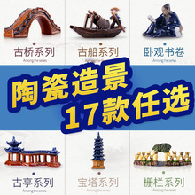 鱼缸工艺品水族箱造景鱼船行舟陶瓷小摆件假山小船假山鱼缸装饰品
