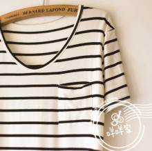 范儿款~极简主义爱条纹柔软有垂感宽松百搭莫代尔复古口袋短袖T恤