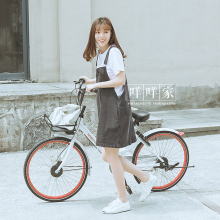 海豚湾。减龄小清新文艺超好品质重工水洗口袋牛仔连衣裙背带裙