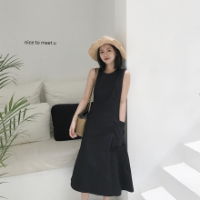 FANFAN 2017春夏款背心裙收腰修身中长款大口袋无袖连衣裙女