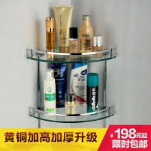 杰沙朗 铜卫生间浴室玻璃置物架 双层转角架卫浴挂件三角架带勾