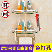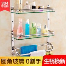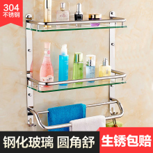 304不锈钢卫生间置物架玻璃 打孔浴室壁挂件洗手间洗澡间厕所三层