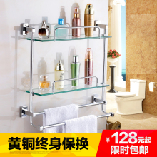 杰沙朗 卫浴置物架 厕所卫生间浴室置物架玻璃双层 浴室挂件铜