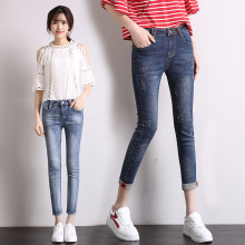 弹力修身牛仔裤女九分裤2017新款弹力卷边七分小脚裤潮学生铅笔裤
