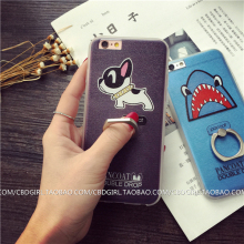 搞怪鲨鱼斗牛犬iphone7支架手机壳苹果6Splus全包指环扣软壳6S壳