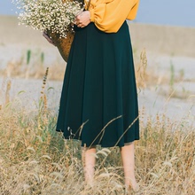 梅子熟了 文艺复古雪纺半身仙女裙森系墨绿色高腰A字中长款裙子女