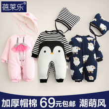 女婴儿连体衣服秋冬季0岁3个月1宝宝冬装6新生儿套装棉衣加厚睡衣