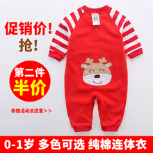 中国风婴儿连体衣春秋加厚夹棉新生儿保暖哈衣红色满月服宝宝唐装