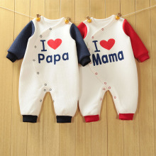 婴儿春秋季连体衣保暖连体衣三层保暖哈衣我爱爸爸妈妈冬季秋装