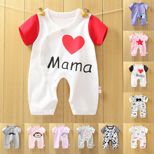 婴儿连体衣男女宝宝夏季短袖纯棉三角哈衣新生儿单层薄款文字爬服