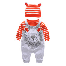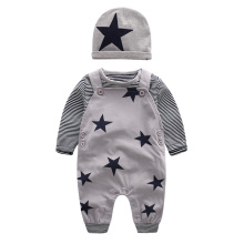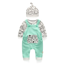 2017春季新品男宝宝背带裤套装婴儿纯棉长袖三件套装婴幼儿外出服