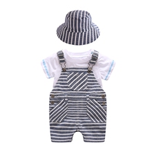 宝宝夏装男0-1岁2婴儿背带裤套装夏季纯棉韩版潮婴幼儿三件套衣服