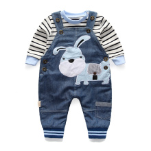 宝宝春装 婴儿背带裤套装 春秋纯棉长袖牛仔外出男女婴幼儿两件套