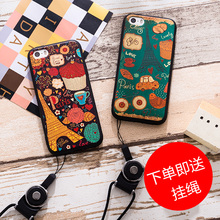 苹果6plus手机壳硅胶iPhone7保护套挂绳防摔6s个性铁塔浮雕男女款