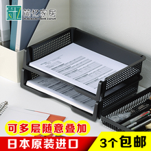 日本进口INOMATA 桌面办公叠加式A4纸文件架文件收纳盒档案收纳篮
