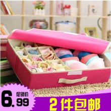 有盖内衣收纳盒衣柜衣物袜子整理内衣收纳格二合一内衣箱收纳包邮