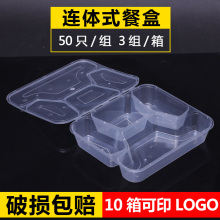贩美丽 连体三格塑料打包盒 一次性快餐盒四格饭盒外卖便当盒分格