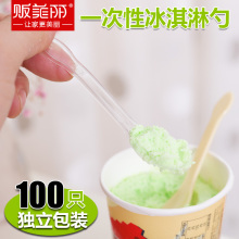贩美丽 一次冰淇淋勺 独立包装100只 冰淇淋铲 雪糕甜品勺 塑料勺
