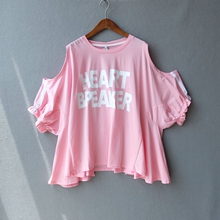 春夏新款 宽松休闲大码蝙蝠袖露肩字母图案娃娃衫T恤 上衣女