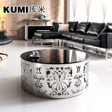库米简约现代时尚小户型茶几 钢化玻璃茶桌圆形酒店家具不锈钢103