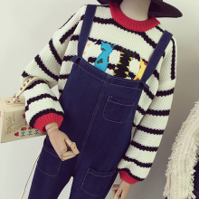 2017早春季新款韩版时尚学院风舒适连体裤宽松百搭休闲牛仔背带裤