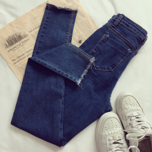 2017春季新款开叉流苏裤脚牛仔裤女九分裤紧身显瘦大码小脚铅笔裤