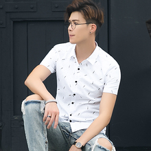 艾淘夏季男士短袖衬衫韩版修身印花衬衣潮青年半袖休闲学生寸衫