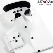 艾淘新款秋装黑白衬衫男长袖纯色衬衣商务休闲韩版修身棉男士正装
