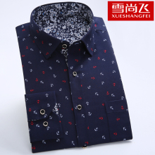 雪尚飞秋季男士时尚印花长袖衬衫修身型青年碎花衬衣潮流男装寸衫