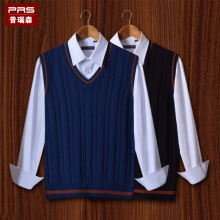 普瑞森背心男纯棉马甲男士修身外套春秋季毛衣韩版无袖针织衫马夹