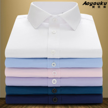 奥优库衬衫男长袖春季修身青年纯色商务正装工作服寸衫男士白衬衣