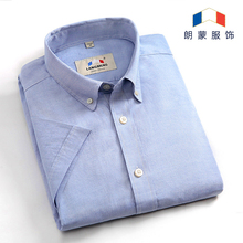 朗蒙夏款牛津纺纯棉短袖男士衬衫休闲修身半袖寸衫衣潮流韩版男装